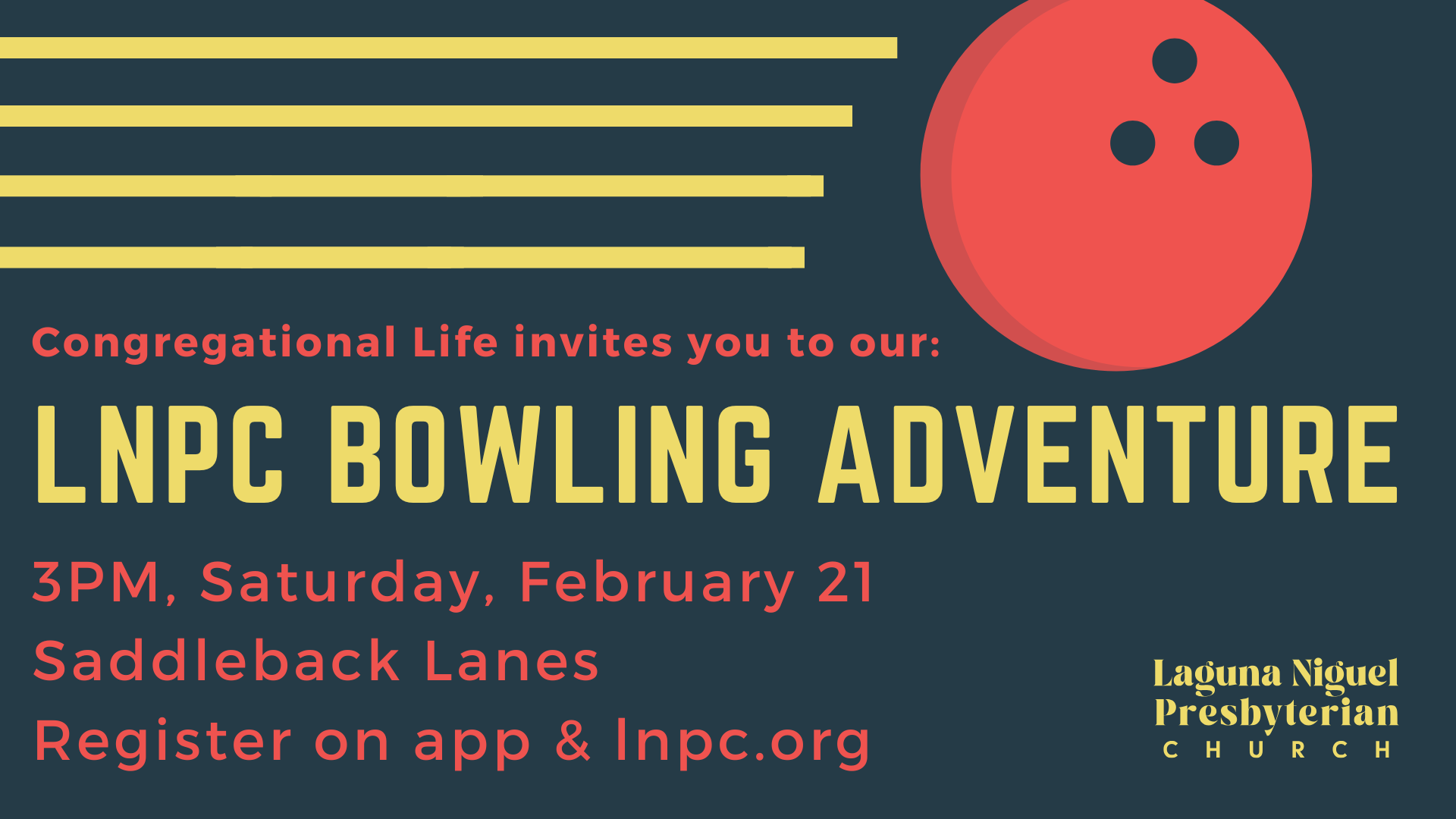 Come enjoy an afternoon of strikes, spares, and fellowship! $25 per bowler. Register below so we know how many lanes to reserve.